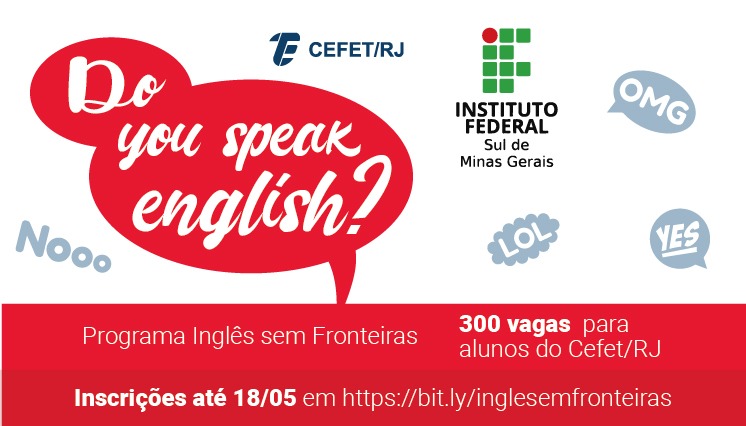 O Cefet/RJ, por meio da Diretoria de Extensão (DIREX) e do Departamento de Extensão e Assuntos Comunitários (DEAC), em parceria com o IFSul de Minas, abre inscrições para Curso Básico de Inglês (250h).