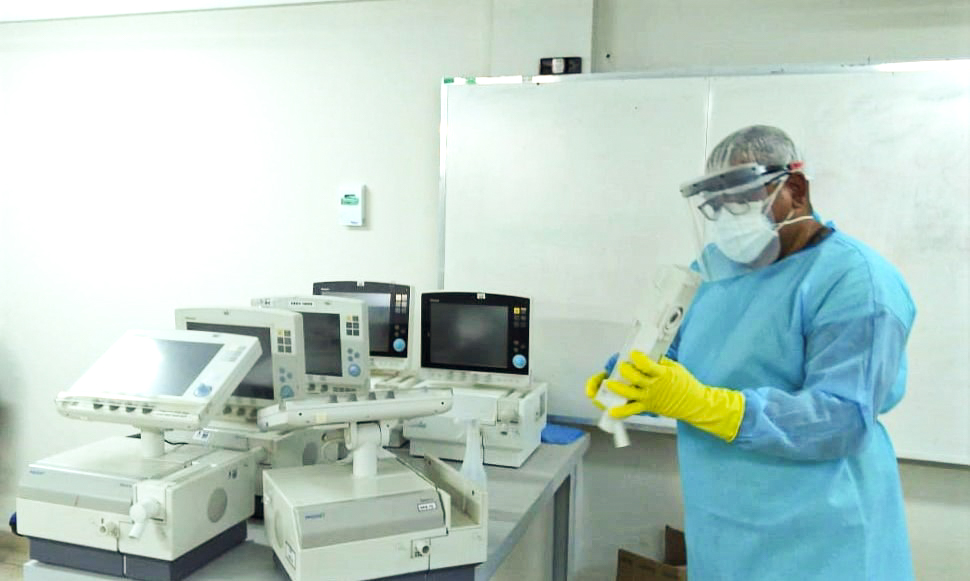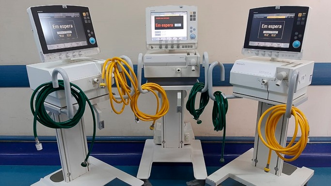 Os três primeiros respiradores mecânicos recuperados e já disponíveis para uso. Fonte: HEGV