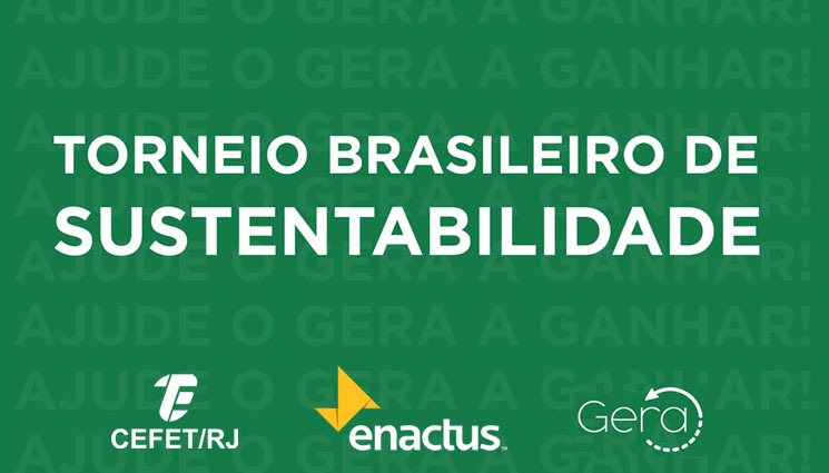 O projeto Gera, do time Enactus Cefet/RJ, está participando do 1º Torneio brasileiro de sustentabilidade (TBS 2020), que é realizado on-line devido às medidas de combate à covid-19. A segunda fase da competição está aberta para votação popular até sábado (28). Para votar no projeto do Cefet/RJ, basta acessar o link disponível no site do evento e preencher os campos solicitados. O voto será computado apenas após o pedido de confirmação enviado para o e-mail cadastrado.