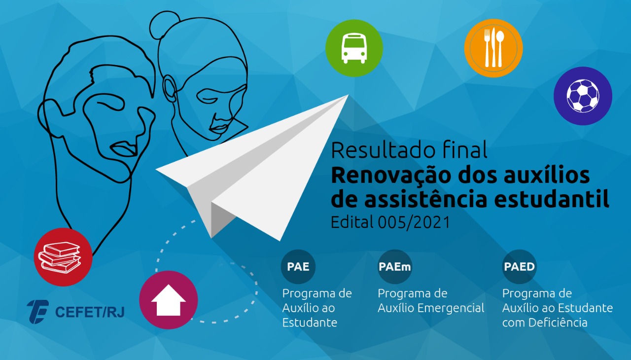 A Coordenadoria de Assistência Estudantil (CAE) do Cefet/RJ divulgou, nesta terça-feira (16), o resultado final da renovação dos auxílios de assistência estudantil dos oitos campi da instituição, relacionados ao Edital 005/2021.