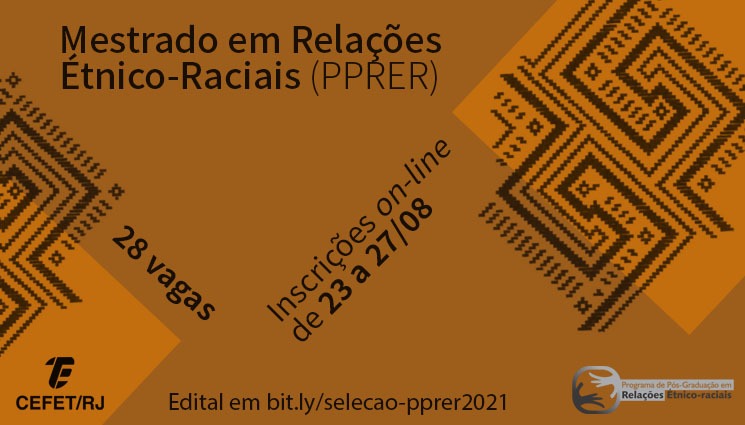 O Cefet/RJ inicia, na próxima segunda-feira (23/08), as inscrições on-line para o edital referente ao Programa de Pós-Graduação em Relações Étnico-Raciais (PPRER). O processo seletivo disponibiliza 28 vagas, sendo duas delas exclusivas para estrangeiros. Das oportunidades destinadas a alunos brasileiros, metade delas será reservada a pessoas indígenas, pretas ou pardas, e 10% a candidatos com deficiência. O curso é ofertado pelo campus Maracanã e terá duração de 24 meses.