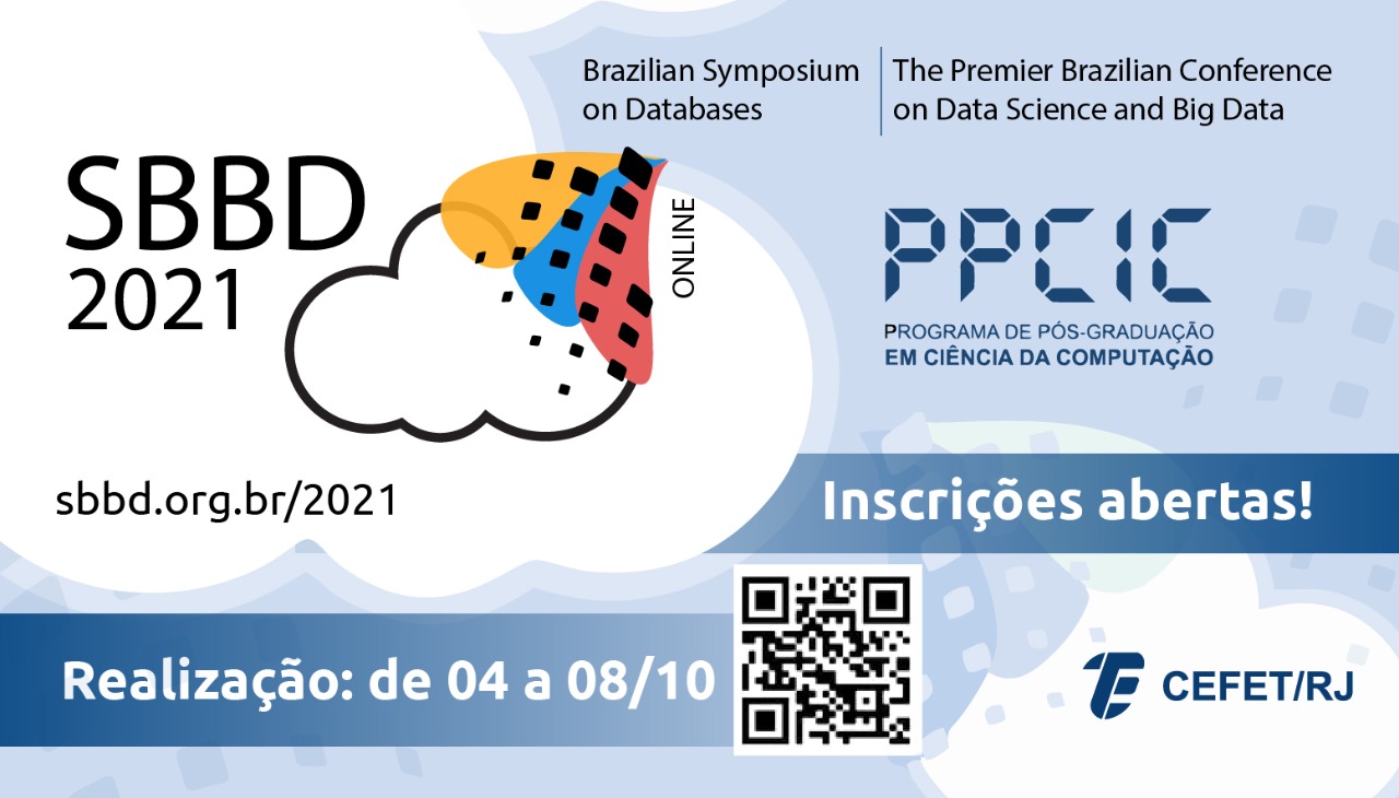 O Programa de Pós-Graduação em Ciência da Computação (PPCIC) do Cefet/RJ está organizando a 36ª edição do Simpósio Brasileiro de Banco de Dados 2021 (SBBD), principal conferência brasileira sobre ciência de dados e Big Data. Devido às medidas de proteção contra o coronavírus, o evento será realizado on-line, entre os dias 4 e 8 de outubro. O simpósio é promovido pela Comissão Especial de Bancos de Dados (CEBD) da Sociedade Brasileira de Computação (SBC).