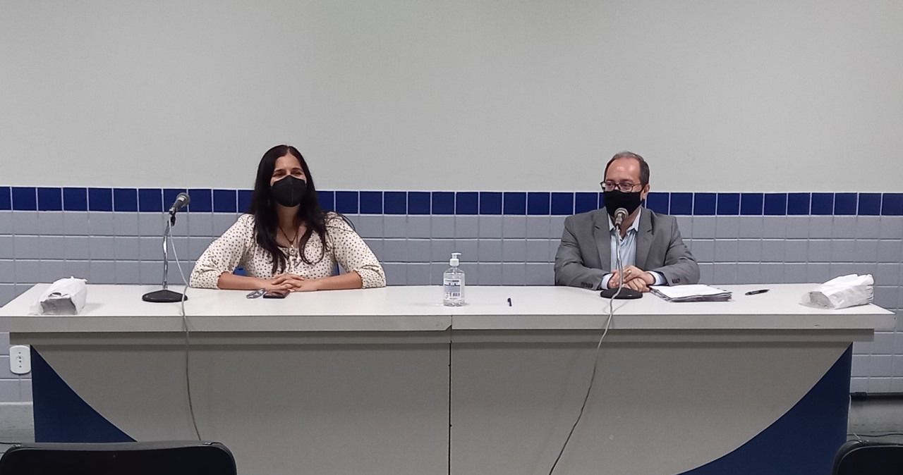 Gisele Vieira (vice-diretora) e Mauricio Motta (diretor-geral) na abertura da cerimônia de posse