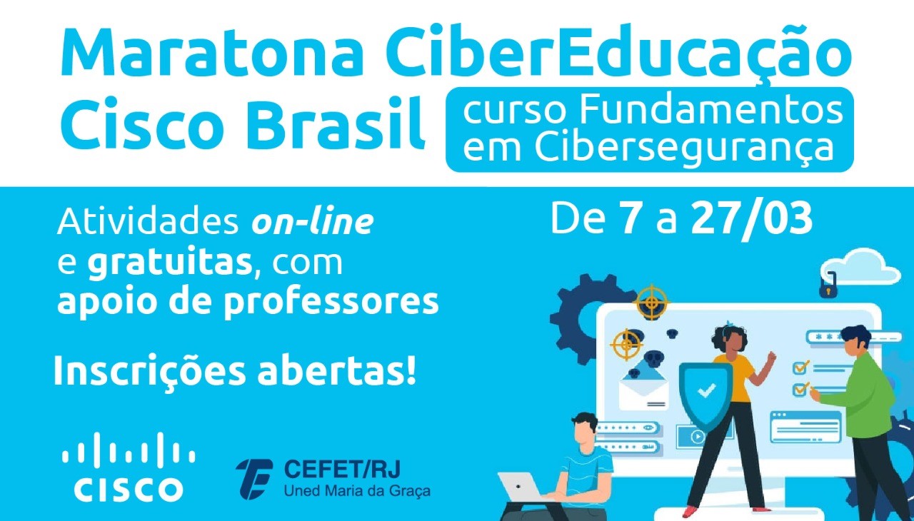 Estão abertas as inscrições para participar da equipe Academia Cisco do Cefet/RJ Uned Maria da Graça, que irá disputar a Maratona CiberEducação Cisco Brasil. A iniciativa tem por objetivo preparar os estudantes para o curso “Fundamentos em Cibersegurança” – etapa de capacitação da maratona que é a primeira de três fases do Programa CiberEducação Cisco Brasil. A participação é gratuita e qualquer pessoa interessada na área pode se inscrever.