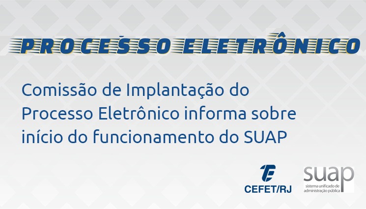 A Comissão de Implantação do Processo Eletrônico informa que, amanhã (3), o Cefet/RJ iniciará a produção e a tramitação de seus processos administrativos em meio eletrônico através do Sistema Unificado de Administração Pública (SUAP). Dessa maneira, a instituição atenderá ao Decreto nº 8.539, de 8 de outubro de 2015, e às boas práticas de modernização de suas atividades, transparência, gestão e governança.