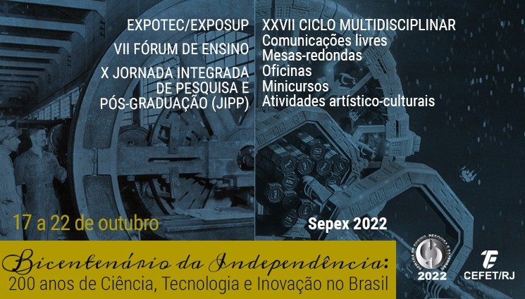 Com o tema “Bicentenário da Independência: 200 anos de Ciência, Tecnologia e Inovação no Brasil”, o Cefet/RJ inicia na próxima segunda-feira (17) a Semana de Ensino, Pesquisa e Extensão (Sepex) 2022. Após dois anos de realização conjunta, em virtude da pandemia, nesta edição cada uma das oito unidades da instituição volta a ter programação própria, que se estende dos dias 17 a 22 de outubro. O evento acompanha a temática e as datas da Semana Nacional de Ciência e Tecnologia (SNCT). A participação é gratuita e aberta ao público.