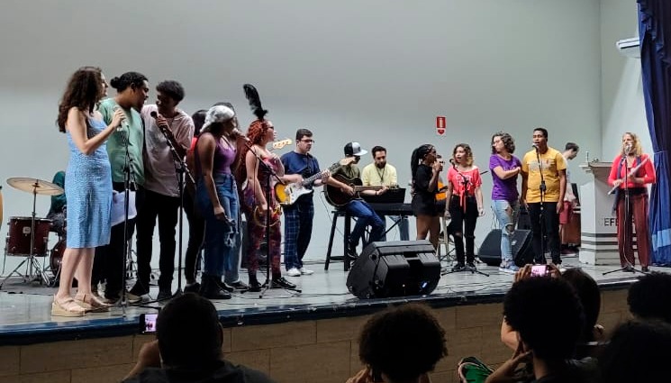 Bandão do Cefet/RJ apresenta espetáculo "Cura" durante a cerimônia.