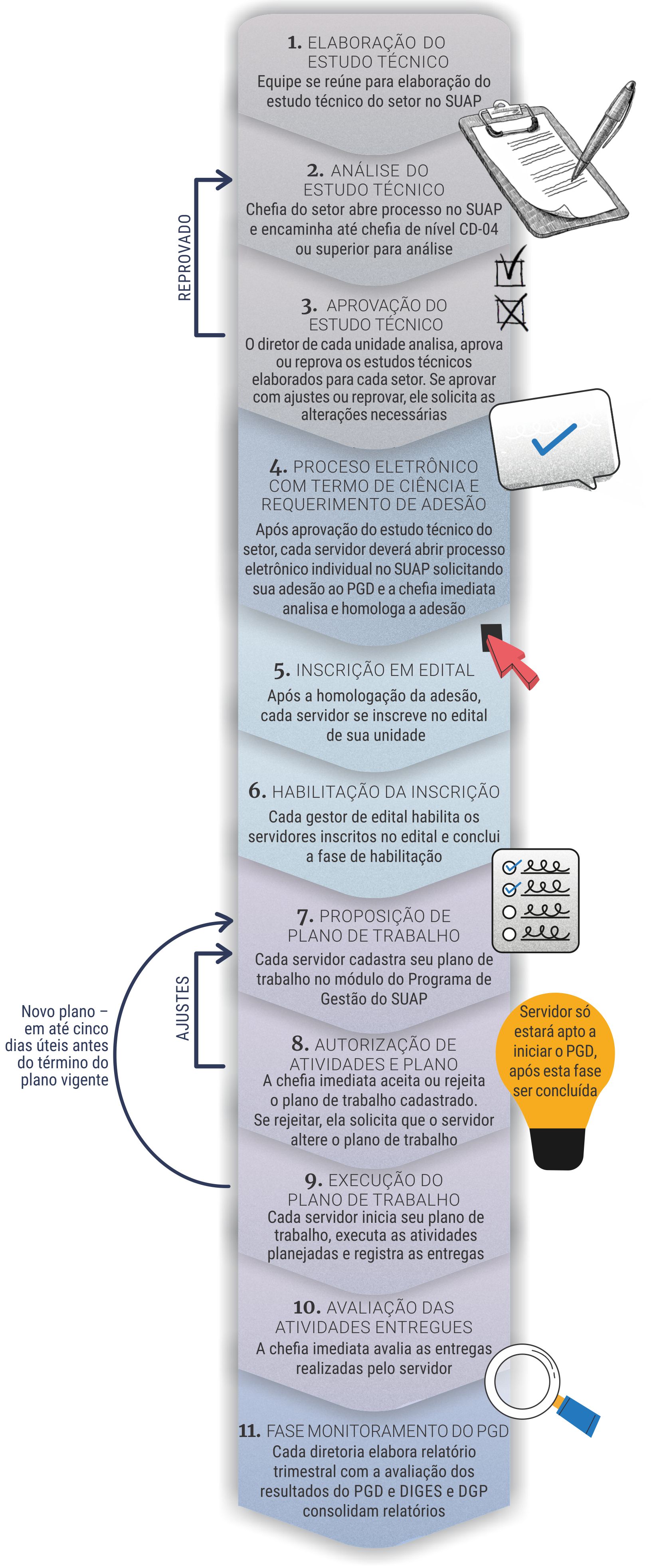 Juntamente com a portaria, a Direção-Geral divulgou também o cronograma de implantação do PGD, que estabelece as datas de cada uma das fases do programa.