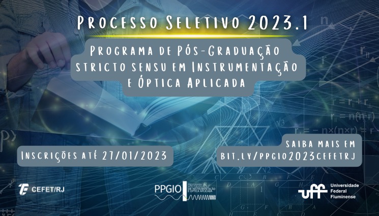 O Programa de Pós-Graduação em Instrumentação e Óptica Aplicada (PPGIO/Cefet/RJ – UFF) está com inscrições abertas, até 27 de janeiro de 2023, para o processo seletivo, em regime de fluxo contínuo, de discentes para o doutorado em Instrumentação e Óptica Aplicada. O Edital PPGIO nº 02/2022 irá selecionar até 20 candidatos para ingresso no ano de 2023.
