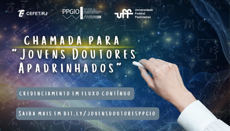 O Programa de Pós-Graduação em Instrumentação e Óptica Aplicada (PPGIO) do Cefet/RJ e a Universidade Federal Fluminense (UFF) estarão recebendo candidaturas, em fluxo contínuo, para credenciamento de até 2 (dois) professores que tenham concluído o doutorado há menos de 5 anos, vinculados a outras instituições de ensino superior que não tenham pós-graduação consolidada na área Engenharias IV da CAPES e que possuam proximidade geográfica, em seu quadro de docentes na categoria “Jovens Recém-Doutores Apadrinhados”.
