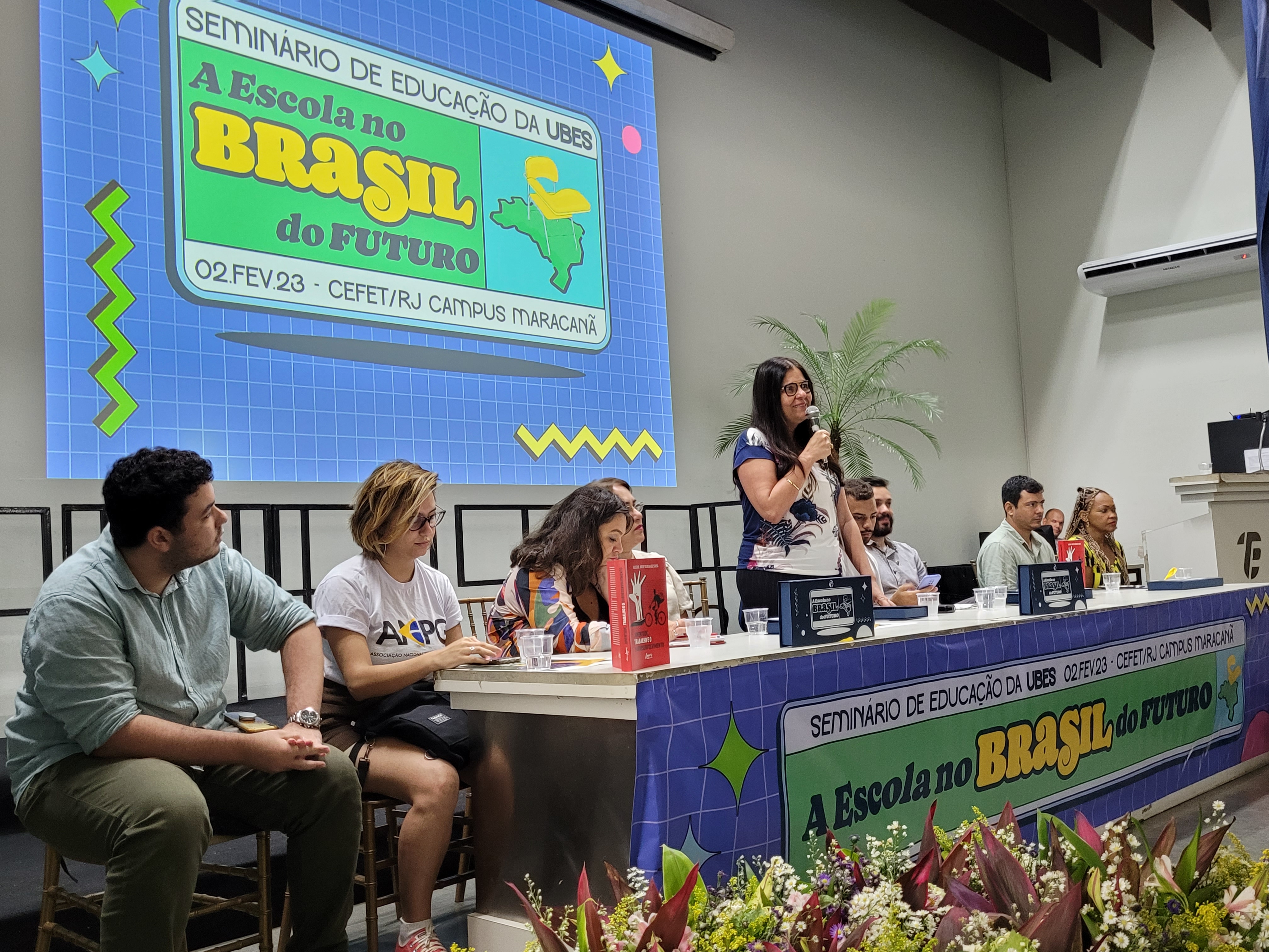 A vice-diretora do Cefet/RJ, Gisele Vieira, participou da mesa de abertura do Seminário de Educação da UBES e falou sobre a importância do investimento em educação para o futuro dos jovens brasileiros