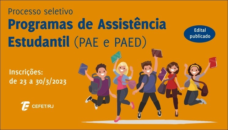 As inscrições no PAE/PAED vão de 23 a 30/3/2023 e devem ser realizadas no link http://assistenciaestudantil.cefet-rj.br, que será disponibilizado durante o período previsto no cronograma constante do Anexo II do edital.