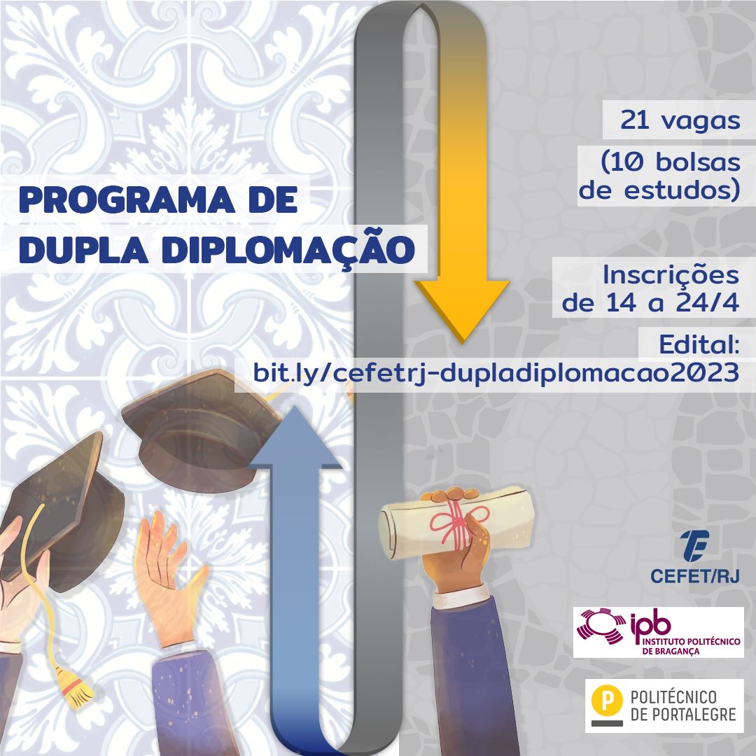 A Assessoria de Convênios e Relações Internacionais (ASCRI) do Cefet/RJ divulgou, nesta quinta-feira (13), o edital que selecionará candidatos para o programa de dupla diplomação em conjunto com os cursos de mestrado do Instituto Politécnico de Bragança (IPB) e do Instituto Politécnico de Portalegre (IPPortalegre), ambos de Portugal. Ao todo, são ofertadas 21 vagas, sendo 10 delas com bolsas financiadas pelo Cefet/RJ, no valor de R$ 1.500 por mês. As inscrições poderão ser realizadas entre os dias 14 e 24 de abril pelo link https://forms.office.com/r/MGrRERjfur.