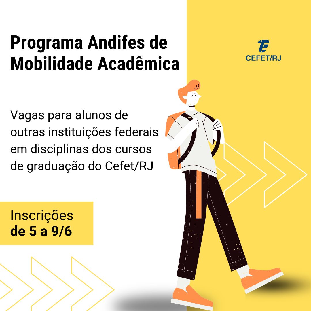 O Cefet/RJ iniciou, nesta segunda-feira (5), o período de inscrições para o edital do Programa Andifes de Mobilidade Acadêmica. A iniciativa permite que alunos de cursos de graduação de outras instituições federais se inscrevam em disciplinas do mesmo nível acadêmico no Cefet/RJ. O prazo máximo de afastamento da instituição de origem é de dois semestres letivos, podendo ser prorrogado por mais um em casos excepcionais.
