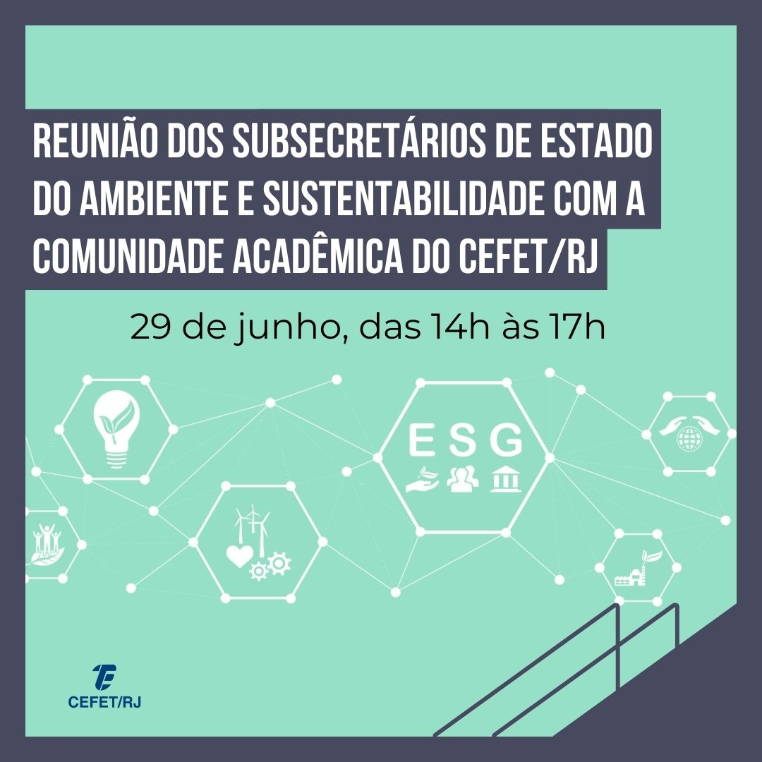 No dia 29 de junho, o Cefet/RJ irá realizar um encontro dos subsecretários de Estado do Ambiente e Sustentabilidade Ana Asti e Sebastião Bruno com a comunidade acadêmica. O evento ocorre das 14h às 17h, no Auditório 5 da Unidade Maracanã.