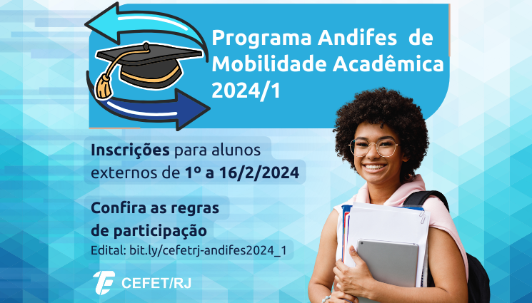 O Cefet/RJ divulga o período de inscrições e as regras de participação no edital do Programa Andifes de Mobilidade Acadêmica, na modalidade presencial, para o período letivo de 2024/1. A iniciativa visa ao intercâmbio de estudantes dos cursos de graduação, permitindo que alunos de outras Instituições Federais de Ensino Superior (Ifes) se transfiram temporariamente para o Cefet/RJ e que alunos da instituição também possam estudar durante um período determinado em outras Ifes.