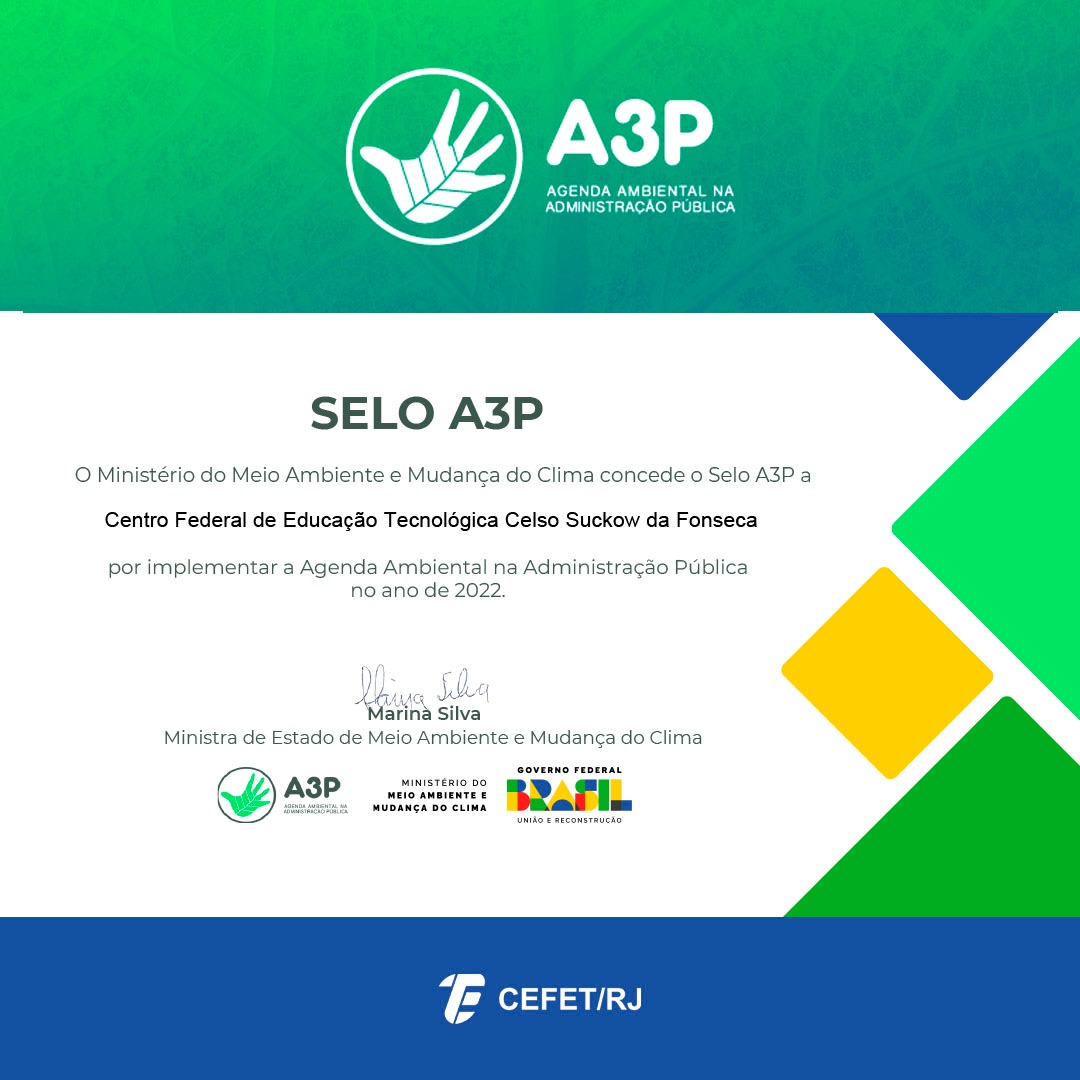 O selo A3P tem por objetivo estimular os órgãos públicos do país a implementarem práticas de sustentabilidade. O reconhecimento é atribuído, anualmente, às organizações que têm ações de compromisso com o meio ambiente, como a adoção de tecnologias mais eficientes, a economia de matéria-prima e o incentivo à reutilização de insumos, melhorando a qualidade de vida da sua comunidade.