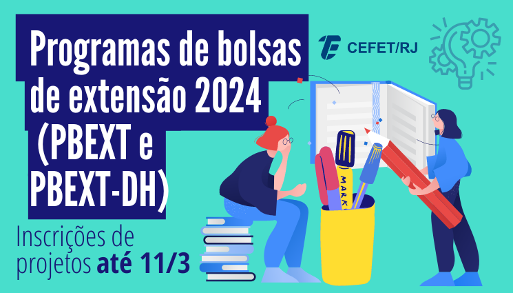 A Diretoria de Extensão (DIREX), por meio do Departamento de Extensão e Assuntos Comunitários (DEAC), divulgou, nesta quarta-feira (28/2), a abertura dos editais para a seleção de projetos de extensão do Cefet/RJ. Ao todo, os editais ofertam mais de 200 bolsas pelo Programa de Bolsas de Extensão (PBEXT) e o Programa de Bolsas de Extensão para área de Direitos Humanos (PBEXT-DH), voltados para estudantes do ensino superior e da educação profissional técnica de nível médio. As inscrições on-line de projetos estarão abertas até o dia 11/3.