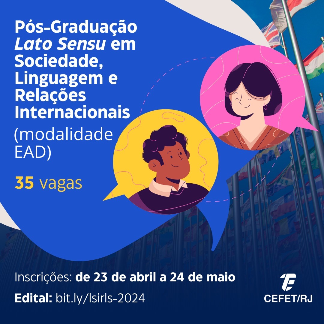 A Diretoria de Pesquisa e Pós-Graduação (DIPPG) divulga a abertura do processo seletivo para o curso de Pós-Graduação Lato Sensu em Sociedade, Linguagem e Relações Internacionais, ofertado na modalidade Educação a Distância (EAD) pela Unidade Maracanã. O edital disponibiliza 35 vagas, sendo 18 delas destinadas a pessoas negras, indígenas e quilombolas, outras quatro a pessoas com deficiência e o restante à ampla concorrência. As inscrições poderão ser realizadas entre os dias 23 de abril e 24 de maio, por meio do Sistema de Gerenciamento de Concursos.