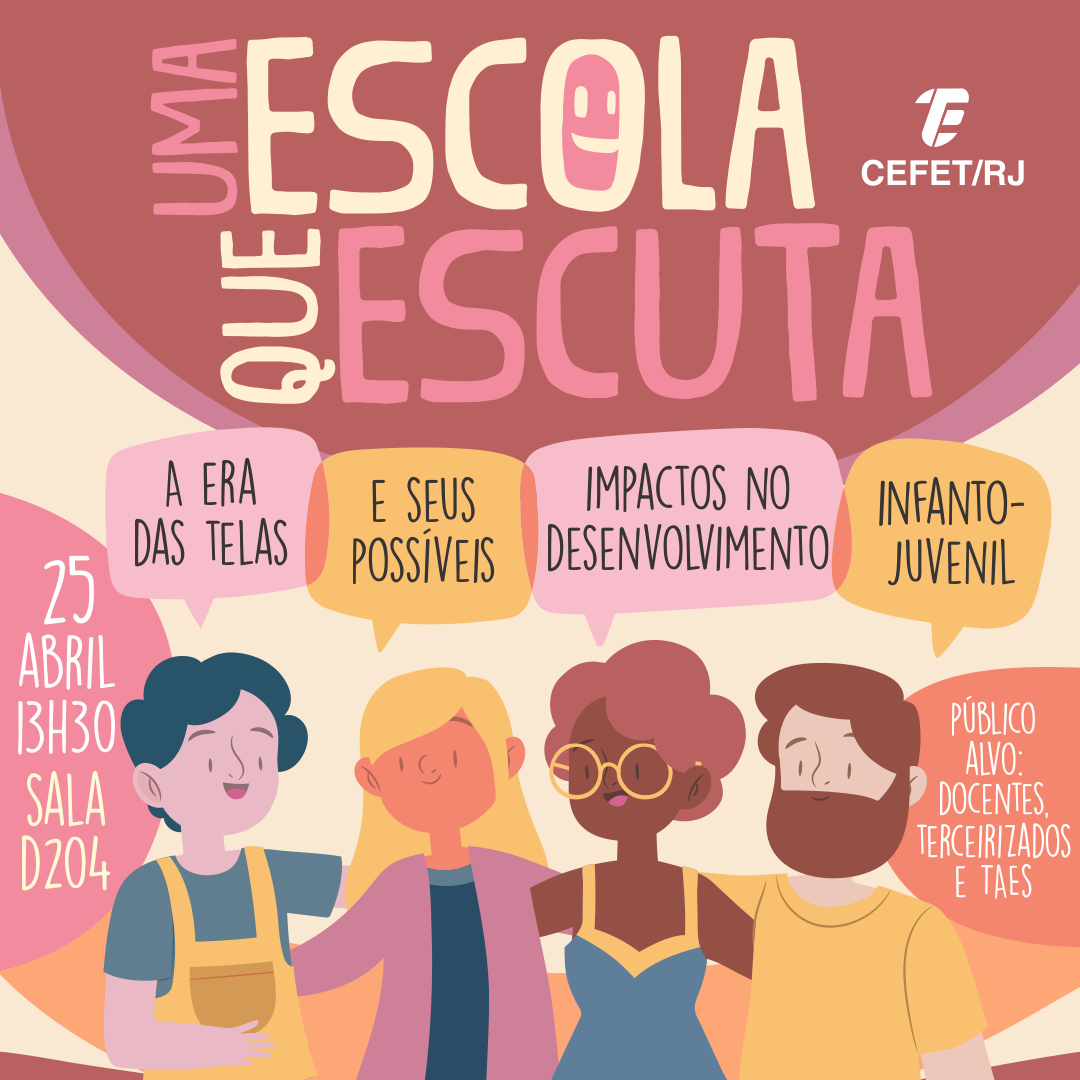 Na próxima quinta-feira, dia 25 de abril, acontecerá a segunda edição da Roda de Conversa "Uma escola que escuta". O tema em discussão será "A era das telas e seus possíveis impactos no desenvolvimento infanto-juvenil". O evento ocorrerá na sala D-204 da Unidade Maracanã, às 13h30.