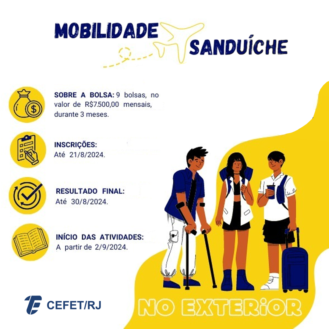 A Diretoria de Pesquisa e Pós-Graduação (DIPPG) do Cefet/RJ informa que as inscrições para a mobilidade sanduíche discente de programas de pós-graduação stricto sensu no exterior devem ser realizadas até amanhã, 21 de agosto de 2024. O edital completo pode ser consultado aqui.