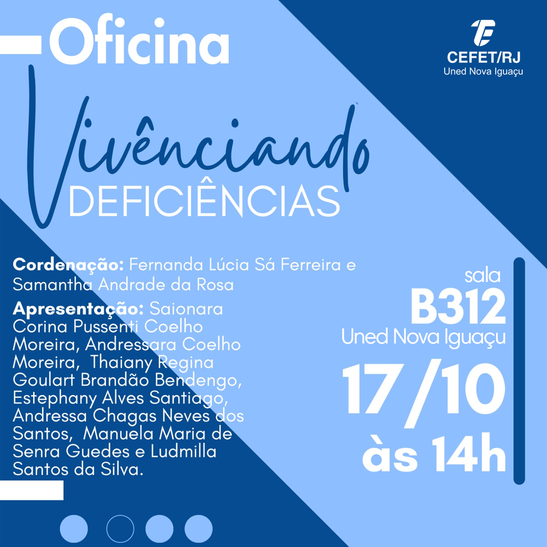 No dia 17 de outubro, a coordenação do projeto Educação Inclusiva em Foco (NAPNE-NI) convida a comunidade do Cefet/RJ para participar de uma atividade prática e interativa, que acontecerá na Sala B312, da Uned Nova Iguaçu, das 14h às 17h. O evento faz parte da Semana de Ensino, Pesquisa e Extensão (Sepex) de 2024 da unidade e tem como objetivo aumentar a conscientização sobre os desafios enfrentados por alunos com deficiência no ambiente escolar.