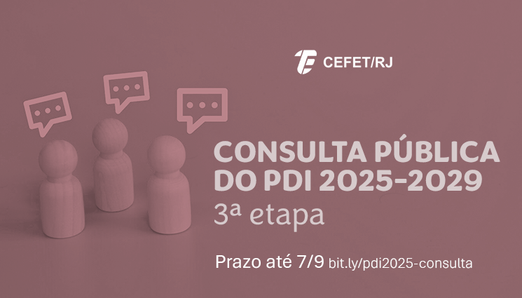 A Diretoria de Gestão Estratégica (DIGES) do Cefet/RJ informa a todos que disponibilizou a terceira e última parte do processo de consulta pública do Plano de Desenvolvimento Institucional (PDI) 2025-2029.