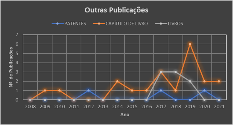 Outras publicações, como Capítulos de Livro, Livros e Patentes também foram contabilizadas e são apresentadas na Figura 3.