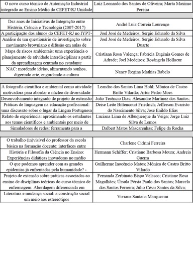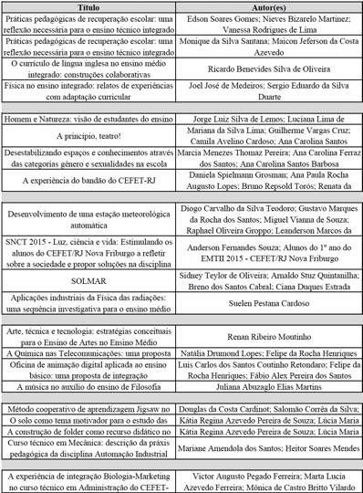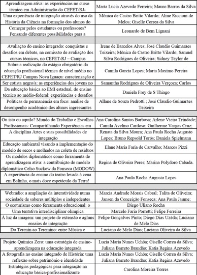 Sessões de Comunicação Oral - salas Bloco D (204 a 214) Eixos: - Avaliação; - Currículo; - Formação Integral e Sujeitos da Aprendizagem; - Ensino Integrado e Interdisciplinaridade; - Estratégias de ensino e aprendizagem em Educação Profissional |
