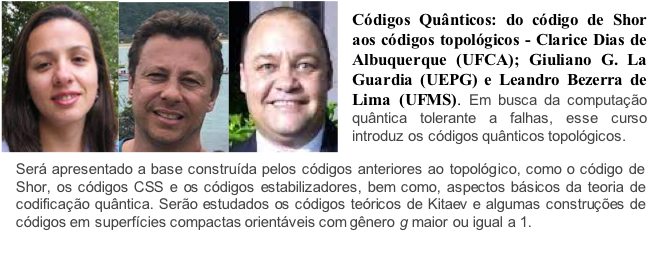 Minicurso 2 (2ª parte): Códigos Quânticos (Auditório 5) Sessão Técnica 4: (Auditório 2) - Vejam os trabalhos desta sessão no final da página |