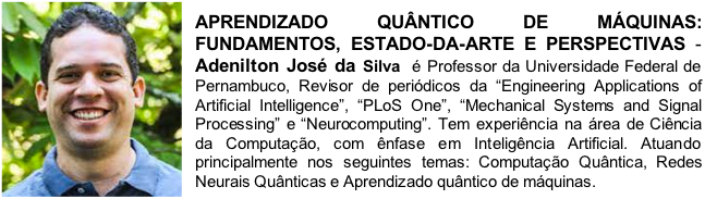 Minicurso 3 (1ª parte): Aprendizado Quântico de Máquinas (Auditório 5) Sessão Técnica 5: (Auditório 2) - Vejam os trabalhos desta sessão no final da página |
