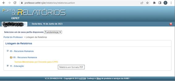 Ao clicar em "Gerar Relatório", o portal irá gerar um PDF, listando todas as suas turmas no período pedido. O sistema tem disponível dados de turmas a partir de 2006. No caso do professor reconhecer que os dados estejam corretos, ele deverá assinar digitalmente o PDF. Sugerimos o uso da Ferramenta Assinador do GOV.BR para fazer a assinatura digital.