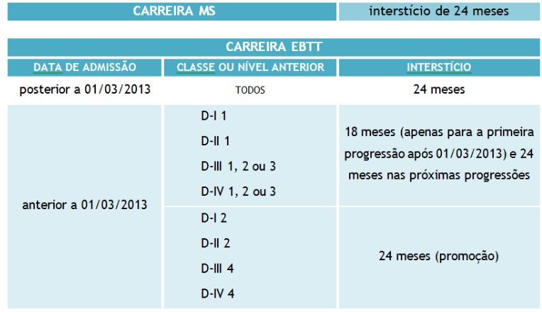 "Aos servidores ocupantes de cargos da Carreira de Magistério do Ensino Básico, Técnico e Tecnológico do Plano de Carreiras e Cargos do Magistério Federal, na data de 1º de Março de 2013, será aplicado o interstício de 18 (dezoito) meses, para a primeira progressão a ser realizada, observando os critérios de desenvolvimento na carreira estabelecidos na Lei nº 12.772, de 2012." (Parágrafo único do inciso IV, do Art. 3º da Portaria nº 554/2013 do MEC)