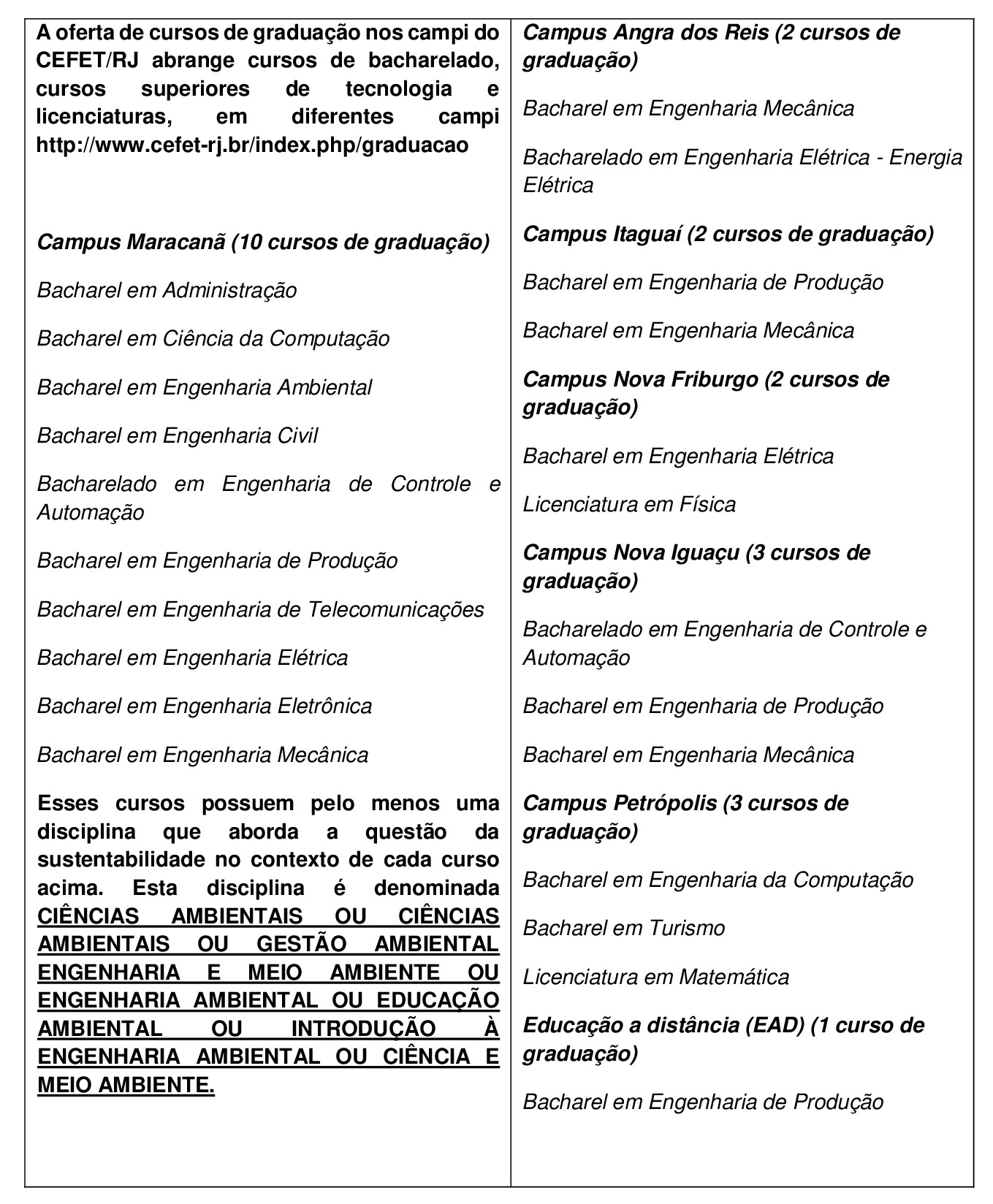 O CEFET/RJ possui cursos integrados, subsequentes, de graduação e de pós-graduação, que preparam seus alunos, futuros profissionais, para atuarem em diversos segmentos, respeitando o meio ambiente.